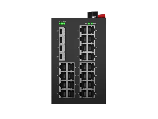 DIN-рейки Промышленный управляемый L2 коммутатор PoE поддержка 24x10/100/1000Base-T портов с 30 Вт PoE на порт (IEEE 802.3at) и 4x10G SFP портов, с безвентиляторной конструкцией схемы охлаждения, широкий диапазон рабочих температур от-40 ° C до 75 ° C, молниезащита, интегрированное переключение, молниезащита, интегрированное переключение, обеспечивает надежную сеть для критически важных приложений в суровых условиях. Благодаря богатым протоколам ERPS значительно повысил гибкость сети и надежность и безопасность промышленной сети. Он также может удовлетворить требования к развертыванию железнодорожного транзита, безопасного города, интеллектуального транспорта, наружного мониторинга и других приложений.
