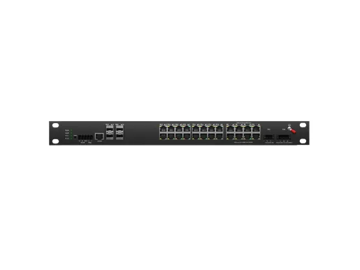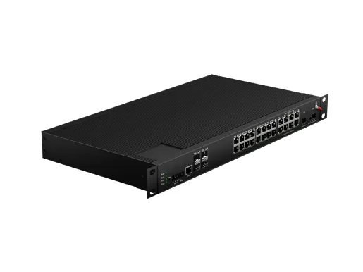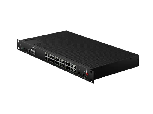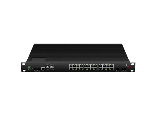 Промышленный стоечный управляемый коммутатор PoE L3 Lite 24x10/100/1000M RJ45 PoE, восходящий кабель 4x10G SFP Резервный DC48-58V вход |
